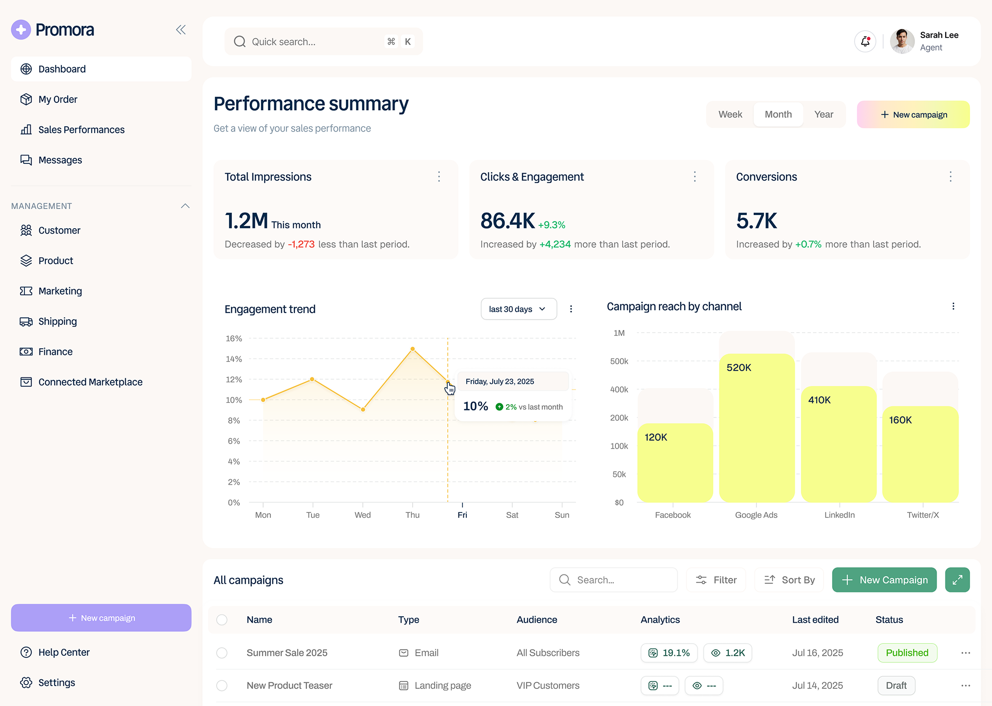 Craft and launch targeted campaigns fast with AI that writes, designs, and automatically fine-tunes results.